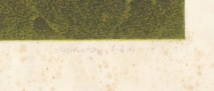 Bemerkungen: Zustand: Das Blatt stark stockfleckig der Druck selbst nicht betroffen, rückseitig Klebespuren // Betitelt und signiert. Kunstgrafik. Druckgröße: 35 x 15 cm. Wolfgang Beier (* 20. Dezember 1925 in Dresden) Zeichner und Grafiker, Lehre als Lithographiker in Dresden, Studium an der Hochschule für Bildende Künste Dresden sein Studium unter anderem bei Josef Hegenbarth, Mitglied im Verband Bildender Künstler der DDR