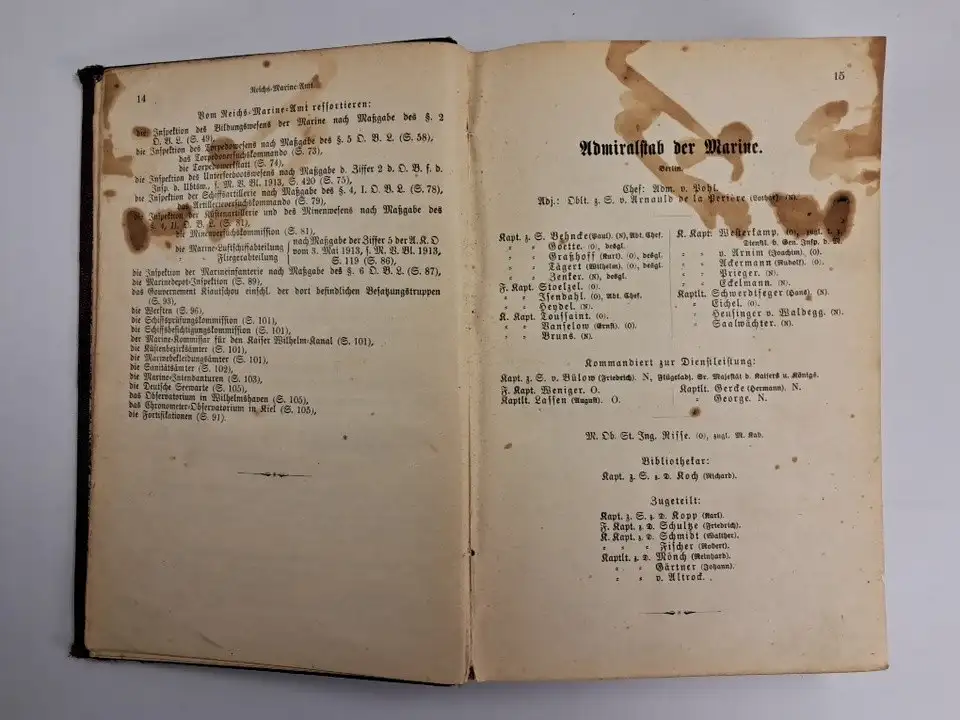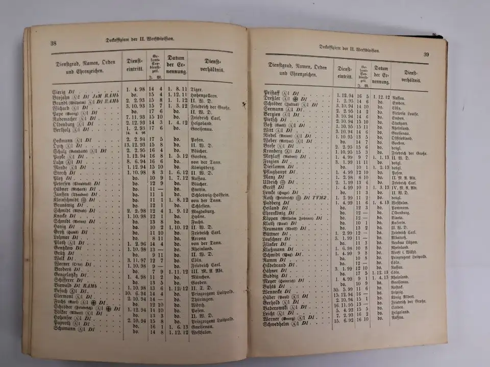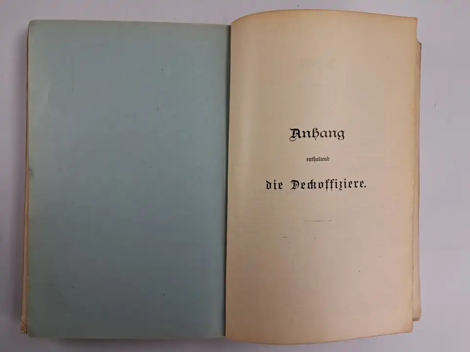 Bemerkungen: Zustand: Einband berieben, Ecken etwas bestoßen, Papier etwas gebräunt, Rücken aufgehellt, hinterer Rückefalz durchgerieben, mit Anstreichungen, vorderes fliegendes Blatt und Titelblatt fehlen // Text in Fraktur. Mit Anhang: Deckoffiziere. Unser Produktfoto entspricht dem hier angebotenen Artikel. Alle Artikel befinden sich stets in gebrauchsfähigem Zustand. Gebrauchte Bücher sparen Ressourcen gegenüber Neuware und schonen die Umwelt.