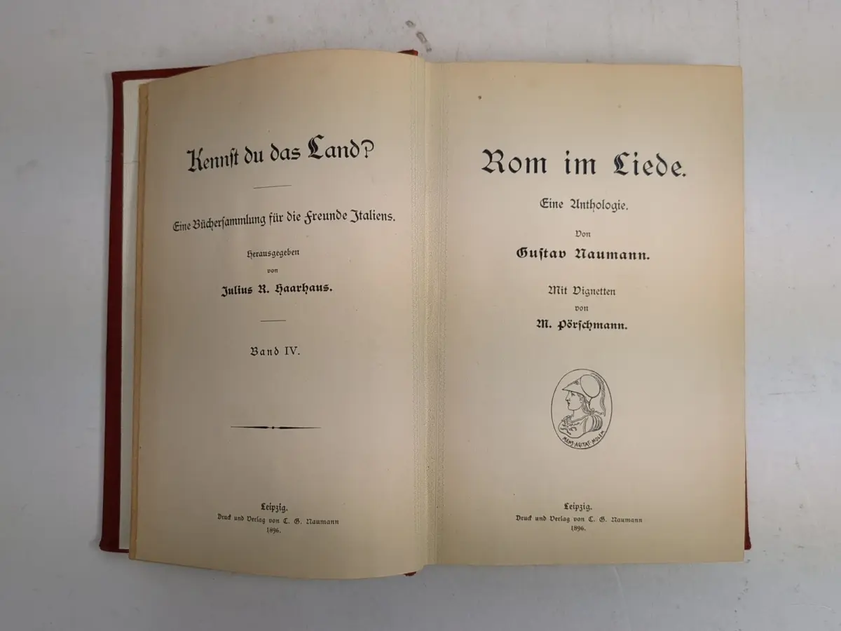 Bemerkungen: Zustand: das obere Rückenkapital berieben und minimal angerissen (0,3 cm), der Kopfschnitt angestaubt, der Buchblock sauber , aber papierbedingt minimal gebräunt // Druck in einer Fraktur, mit zahlreichen Vignetten von M. Pörschmann. Kennst du das Land? Eine Büchersammlung für die freunde Italiens, Band IV