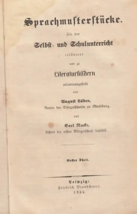 Schlagworte: Sprachmusterstücke, Lüben, August, Nacke, Carl, Sammlerexemplare, Sprach- & Kulturwissenschaften, Germanistik, Literaturwissenschaft, Sprachwissenschaft