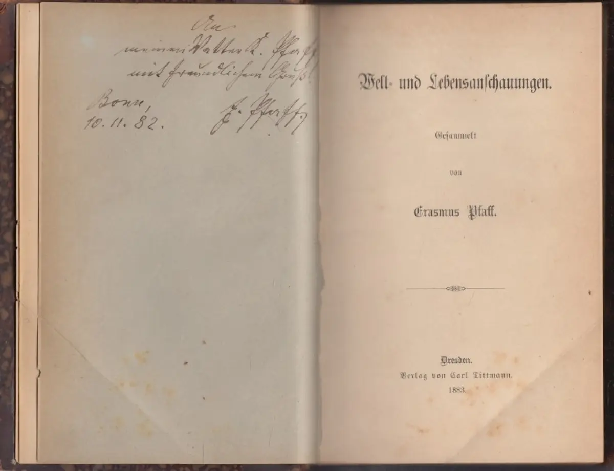 Schlagworte: Widmungsexemplar - Erasmus Pfaff, Geistes- und Sozialwissenschaften, Literatur bis um 1900, Philosophie, Signierte Bücher, Widmungsexemplare