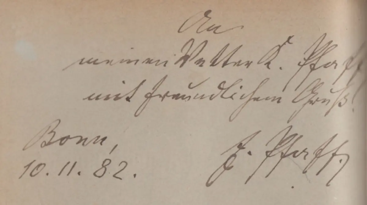 Bemerkungen: Zustand: Ecken und Kanten stark berieben. Rücken lose, aber beiliegend. Vorsatz mit großem Eckknick, der sich bis Seite 50 fortsetzt. Buchblock sonst sauber und gut. Mit Widmung des Verfassers für ein Familenmitglied vom November 1882 // In gebrochener Schrift. Signiert vom Autor