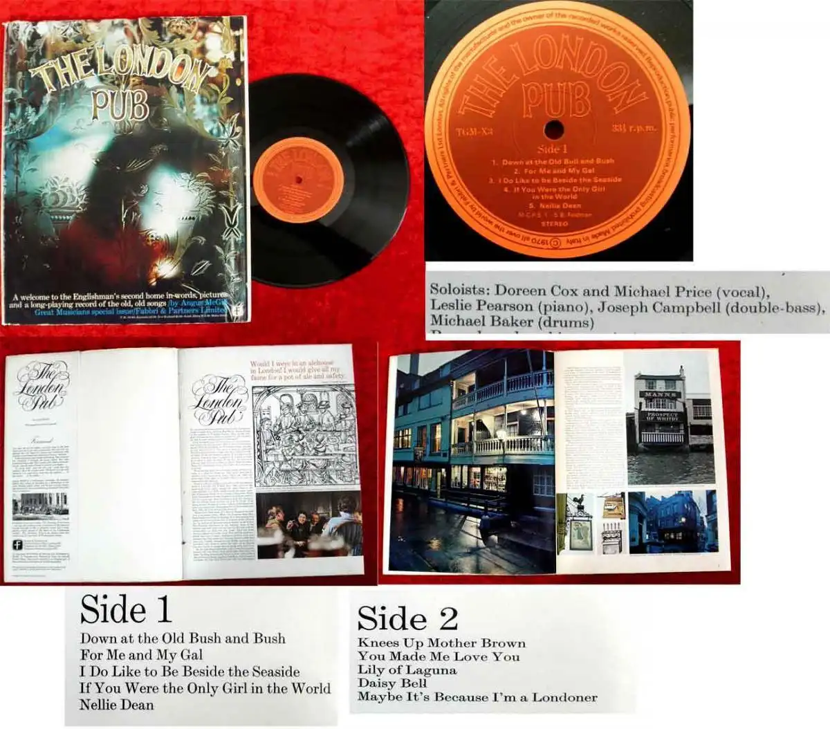 seltenes Set - Buch mit Schallplatte (25cm LP); Angus McGill, die Geschichte der Londoner Pubs in Bild, Ton und Text, 1970, Original aus Großbritannien