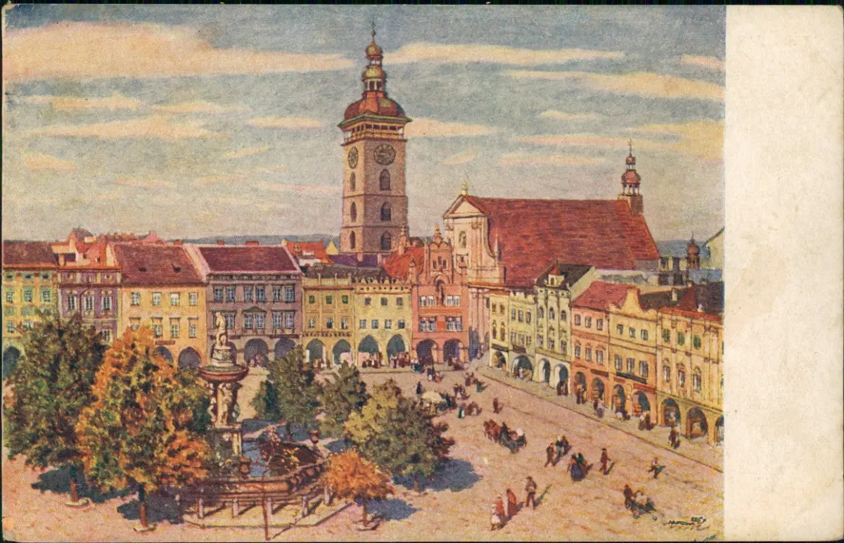 Budweis České Budějovice Marktplatz | Ringplatz Künstlerkarte 1928