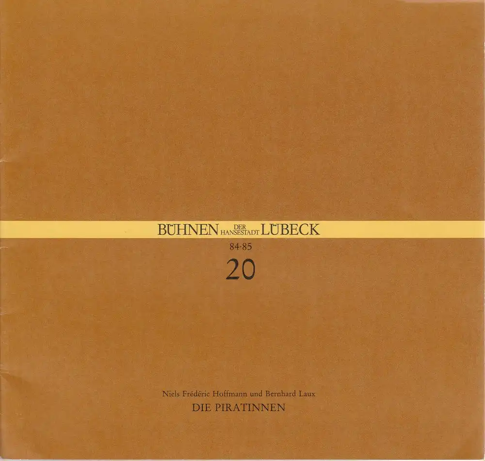 Bühnen der Hansestadt Lübeck, Hans Thoenies, Christine Mitlehner: Programmheft Niels Frederic Hoffmann DIE PIRATINNEN Uraufführung Premiere 19. Juni 1985 Spielzeit 1984 / 85 Heft 20.