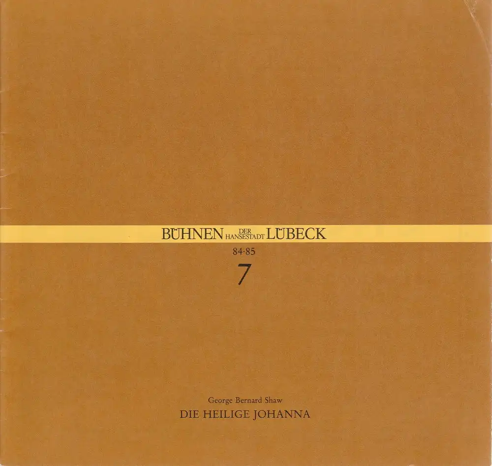 Bühnen der Hansestadt Lübeck, Hans Thoenies, Walter Hollender: Programmheft George Berard Shaw DIE HEILIGE JOHANNA Premiere 28. Oktober 1984 Kammerspiele Spielzeit 1984 / 85 Heft 7.