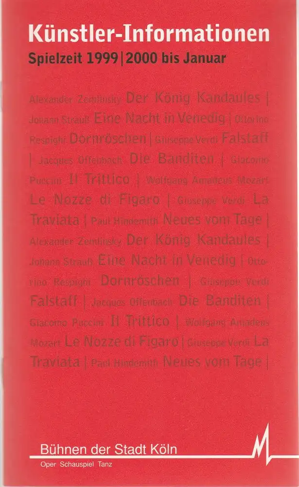 Bühnen der Stadt Köln, Oper Schauspiel Tanz, Günter Krämer, Hans-Joachim Wagner, Kerstin Neubarth: Künstler-Informationen Spielzeit 1999 / 2000 bis Januar.