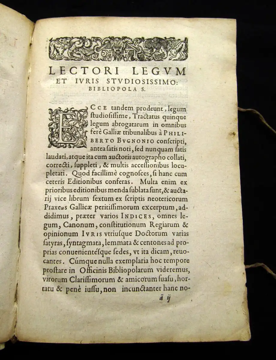 Titelvignette, 4 Bll., 557 S., 44 nn.S.(Index), Pergamenteinband d. Zt. mit sp. Kanten und 2 Bünden