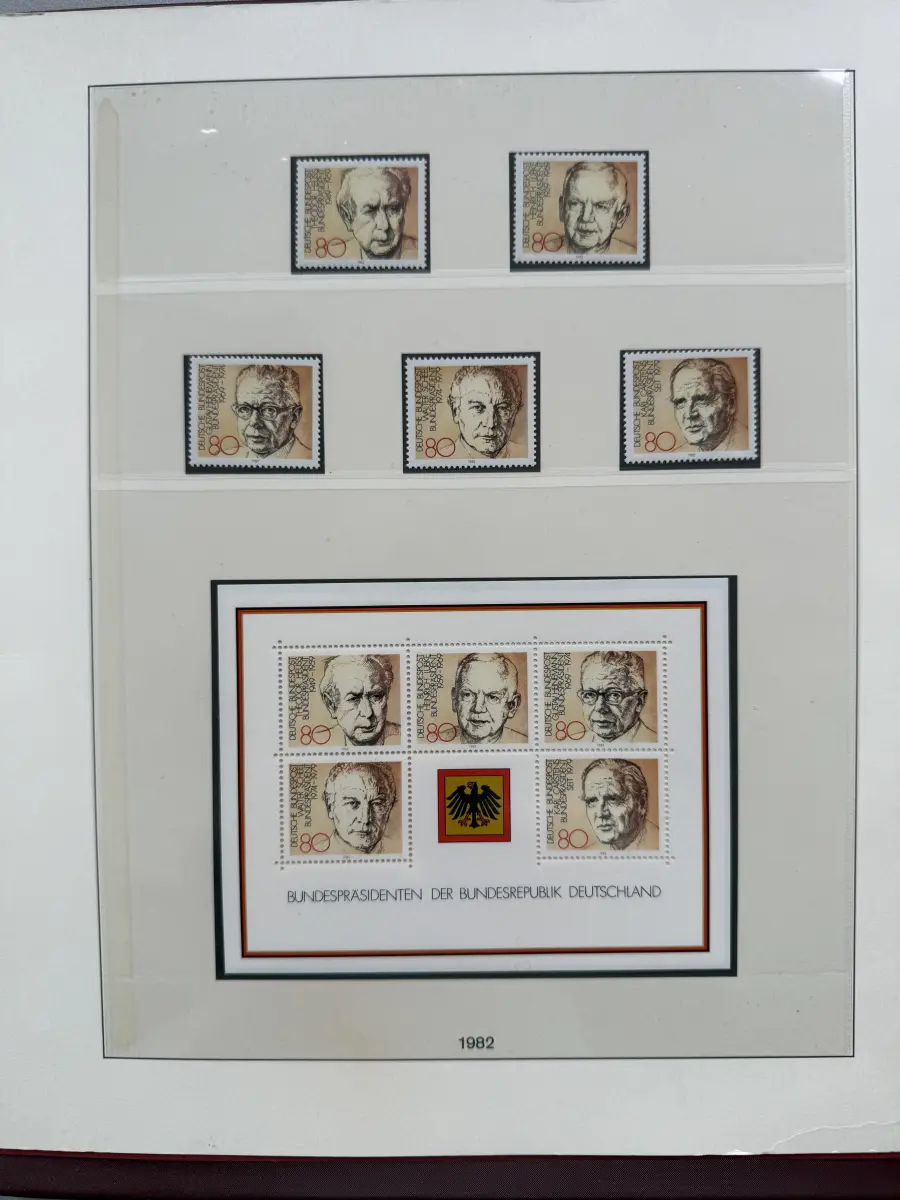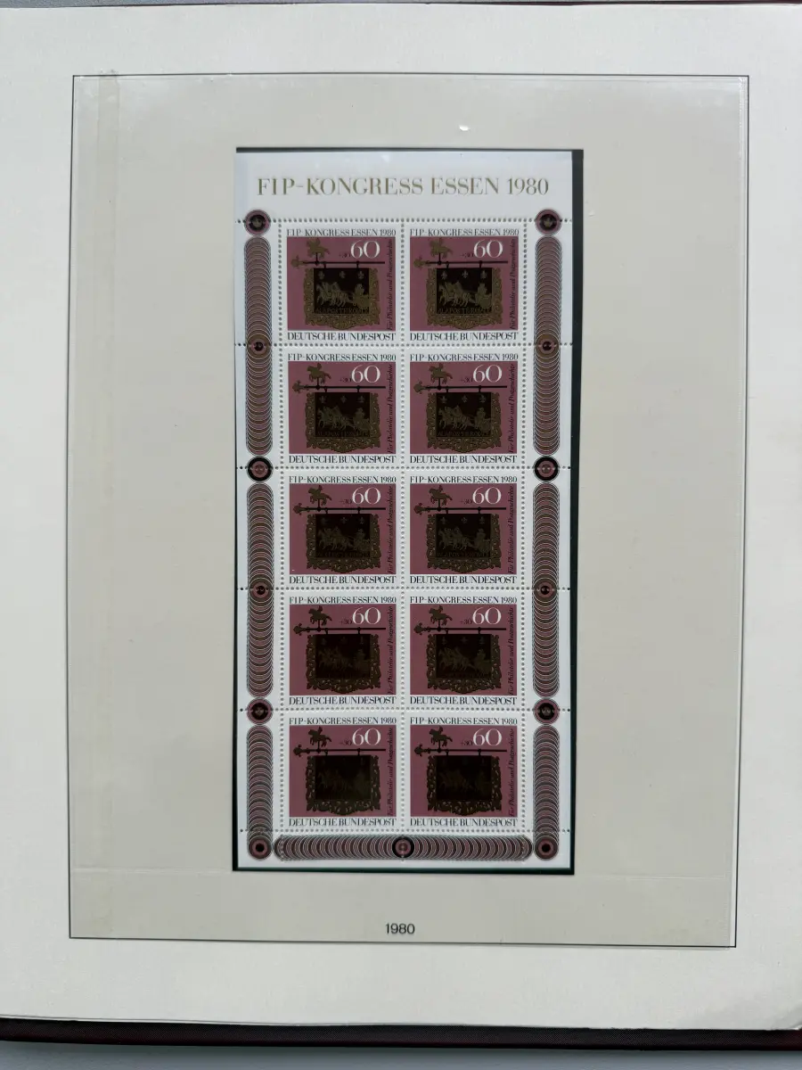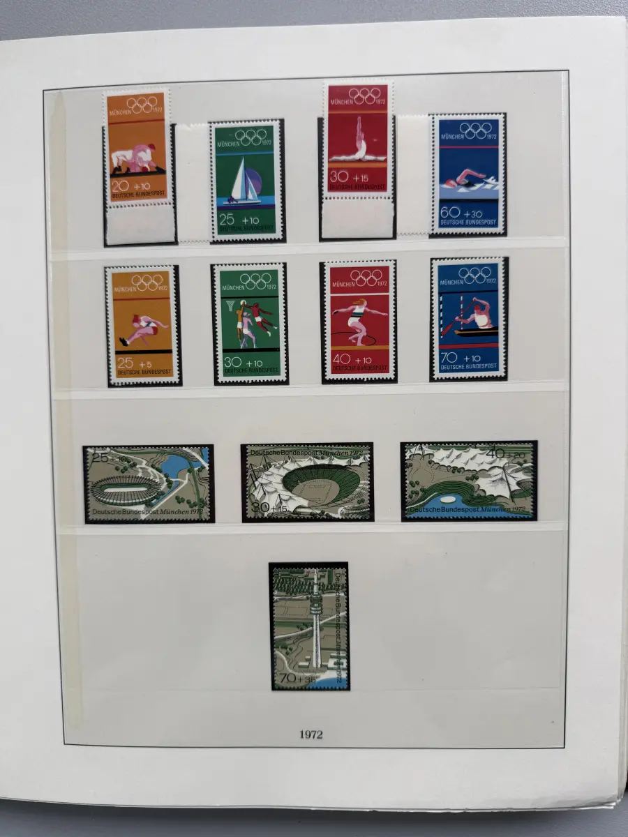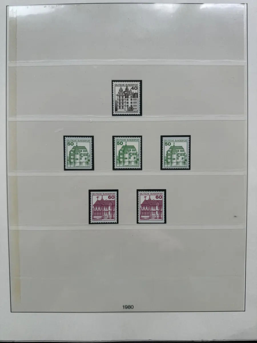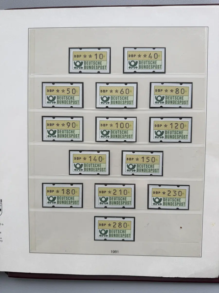 Die Ausgaben der Deutschen Bundespost von 1959-1999 aus Sammlernachlass postfrisch vier LINDNER-Vordruckringbindern auf über 200 Lindner-T-Vordruckblättern (1949-2000) in allen Hauptnummern nach MICHEL augenscheinlich komplett. Vor 1959 sind auch noch einige Marken vorhanden, der Jahrgang 2000 in DM-Währung ist ebenfalls eingefügt. Auch die Block-Einzelmarken sind offensichtlich alle enthalten, dazu noch C/D Werte, ATM, Letterset, Bogenränder etc. sind vorhanden. Der Neupreis für die Vordruckblätter alleine liegt bereits bei weit über 500 Euro, Ringbinder unberechnet. Dazu kommen dann noch die 41 Briefmarken-Jahrgänge.