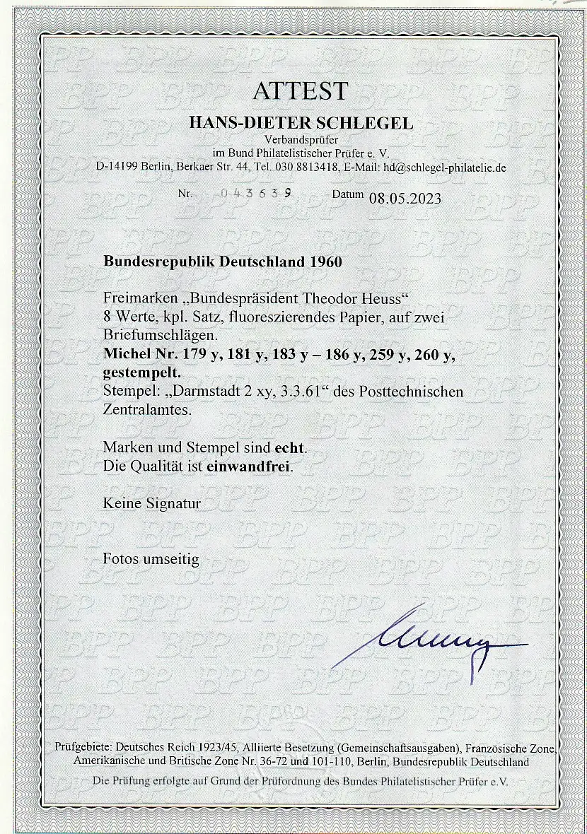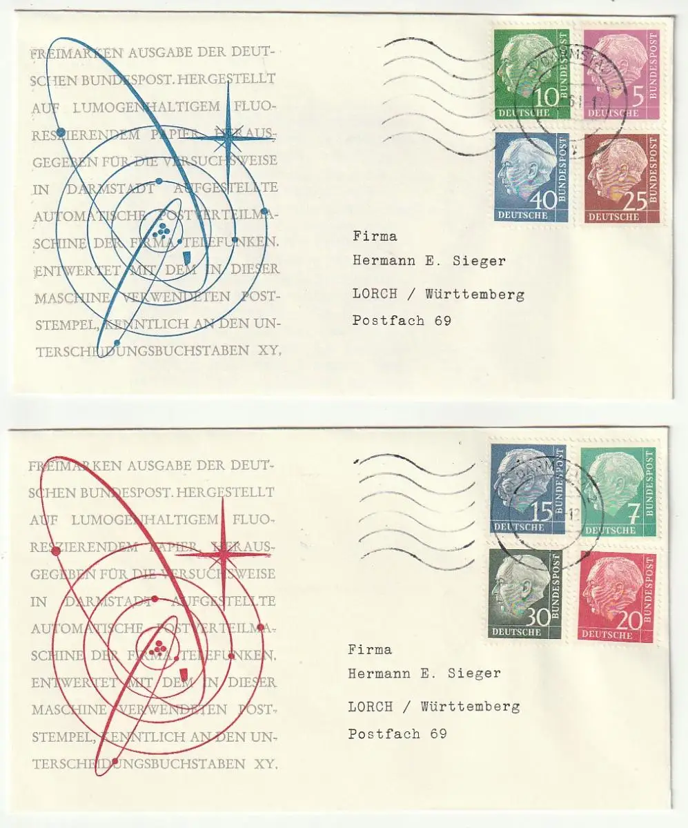 Bund Heuß fluoreszierend auf 2 Schmuckbriefen, Attest