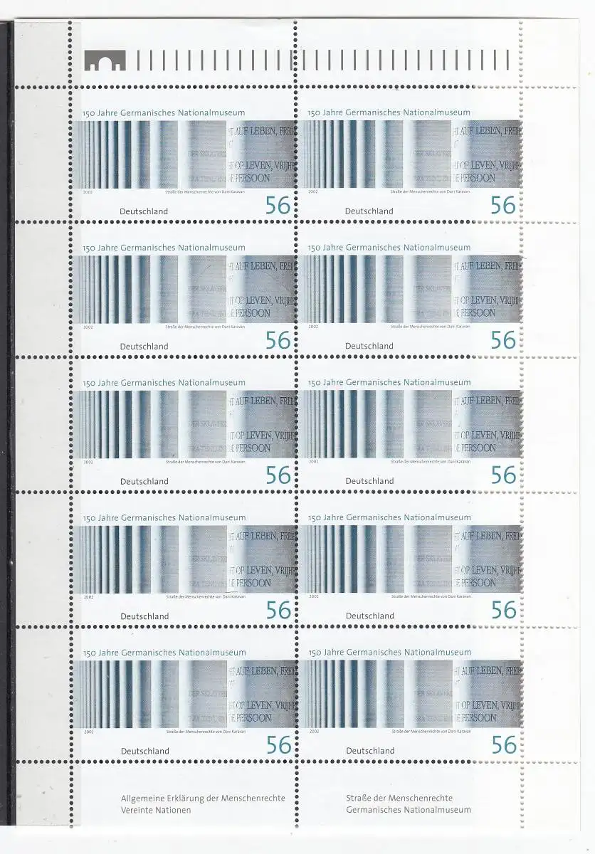 Bundesrep. Deutschland 2002 Nr Zehnerbogen 2269 Postfrisch / **