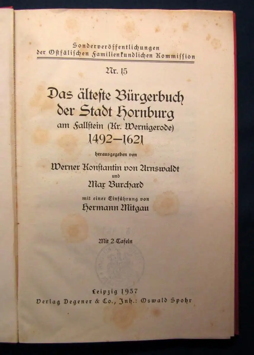 Das älteste Bürgerbuch der Stadt Hornburg am Fallstein( Kr. Wernigerode) 1492- 1621