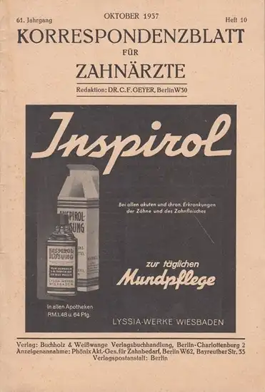 C. F. Geyer (Red.): Korrespondenzblatt für Zahnärzte. 61. Jahrgang, Heft 10, Oktober 1937.