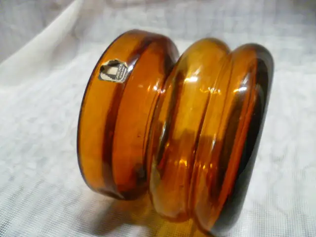 CASCADE 1950 er Rillenvase TURMALINGLAS oder Bernsteinglas VINTAGE, mundgeblasen , Etikett vorhanden! Vitrinenzustand