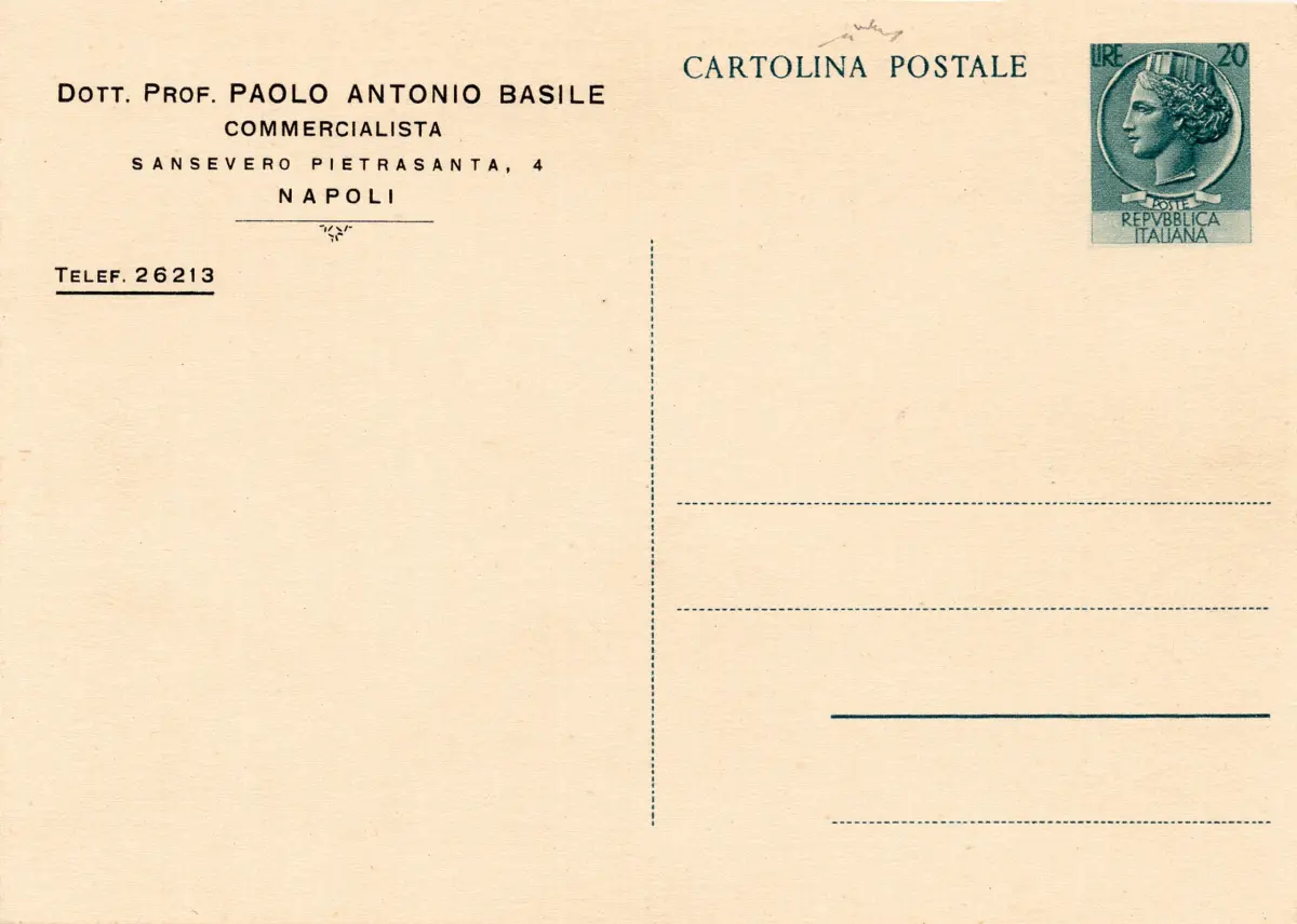 C - C.P. Lire 20 Syracusana n. C 153 mit oben links aufgedruckten Absenderangaben - Neu einwandfrei - Ungewöhnlich, für Fachmann Cod.1138/182