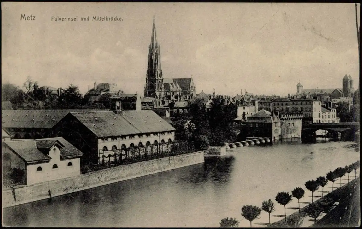 CPA Metz Pulverinsel und Mittelbrücke. 1917 Lothringen Lorraine gel. Feldpost