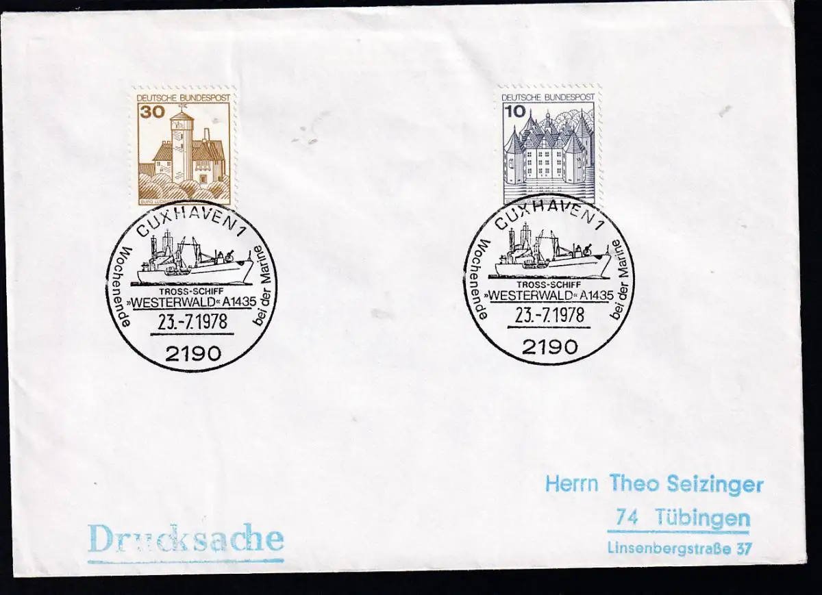zwei sehr schöne Bahnpostbelege, einmal HUSUM-GARDING von 1916 - ohne Zugnummer aufgrund der Furcht vor feindlicher Spionage - und ERFURT-EISENACH von 1965. Vielen Dank, bin mit der Lieferung sehr zufrieden.