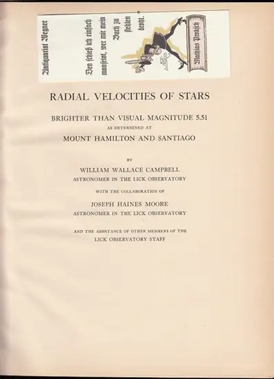 Campbell, William Wallace and Joseph Haines Moore: Radial Velocities of Stars brighter than Visual Magnitude 5.51 as determined at Mount Hamilton and Santiago. (=Publications of the Lick Observatory ; Volume XVI).