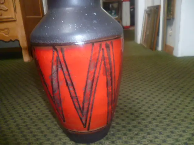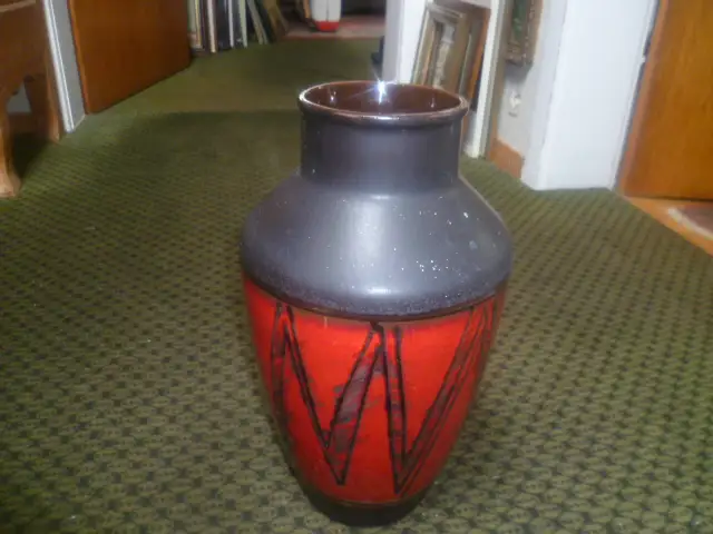 Carstens Tönnishof Atelier Keramik Designer : Hildegard Delius 1896 geb-1955 Mid Century um 1950-55 Formnummer 1233-34 Sehr seltene Ferarri rote mit Schwarzer Zickzack Lauflasur.