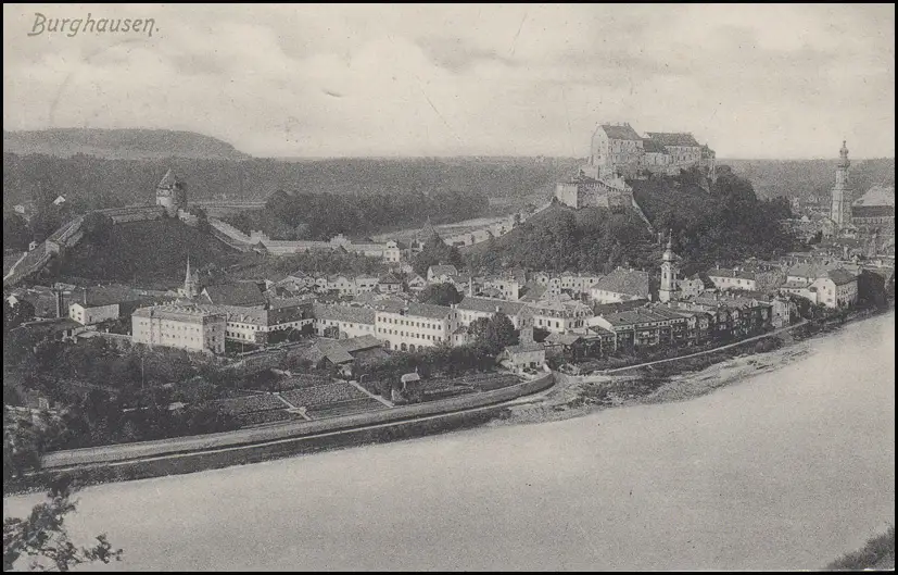 Bayern Ansichtskarte Burghausen Stadtansicht, BURGHAUSEN 29.8.11 nach München