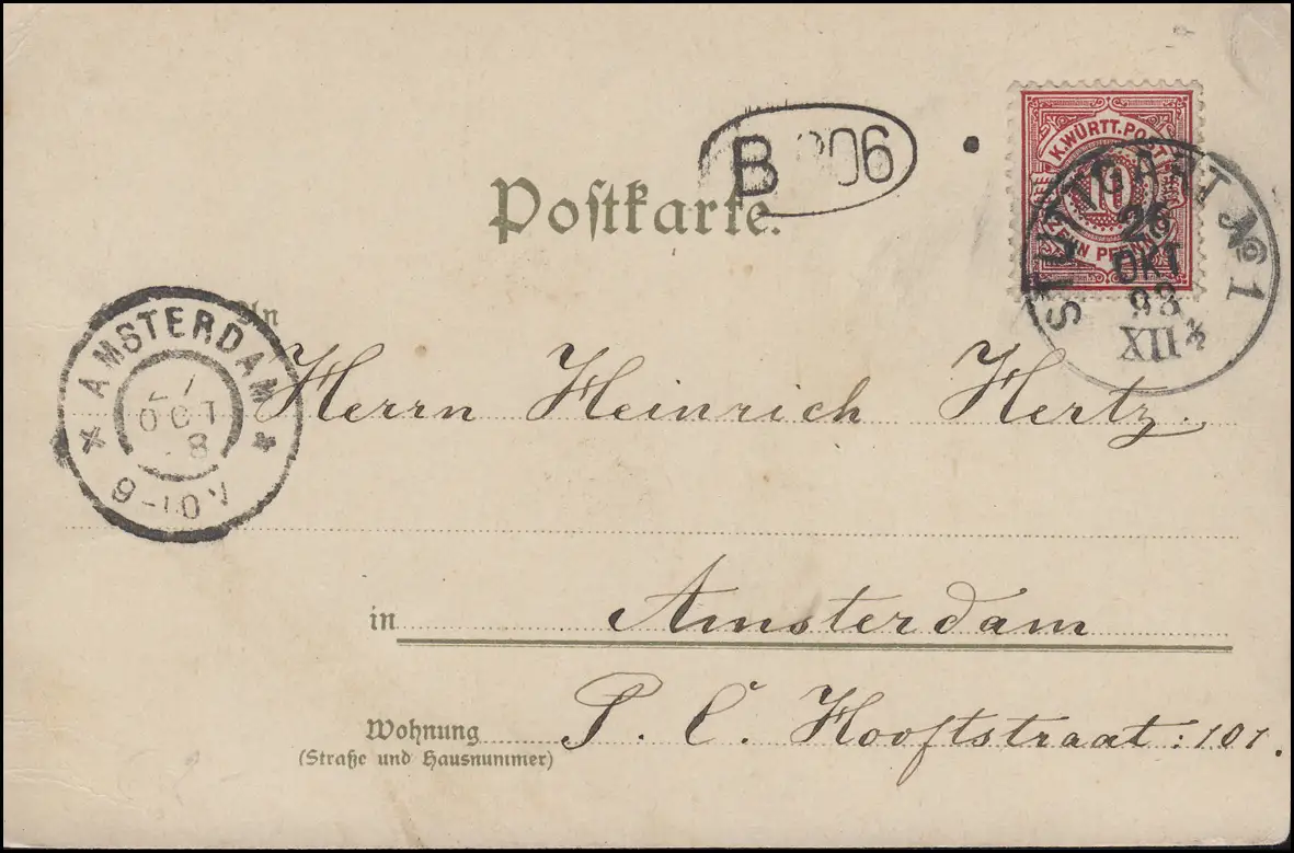 Carte de vue Des installations supérieures STUTTGART 26.10.1898 n. Amsterdam 27.10.98