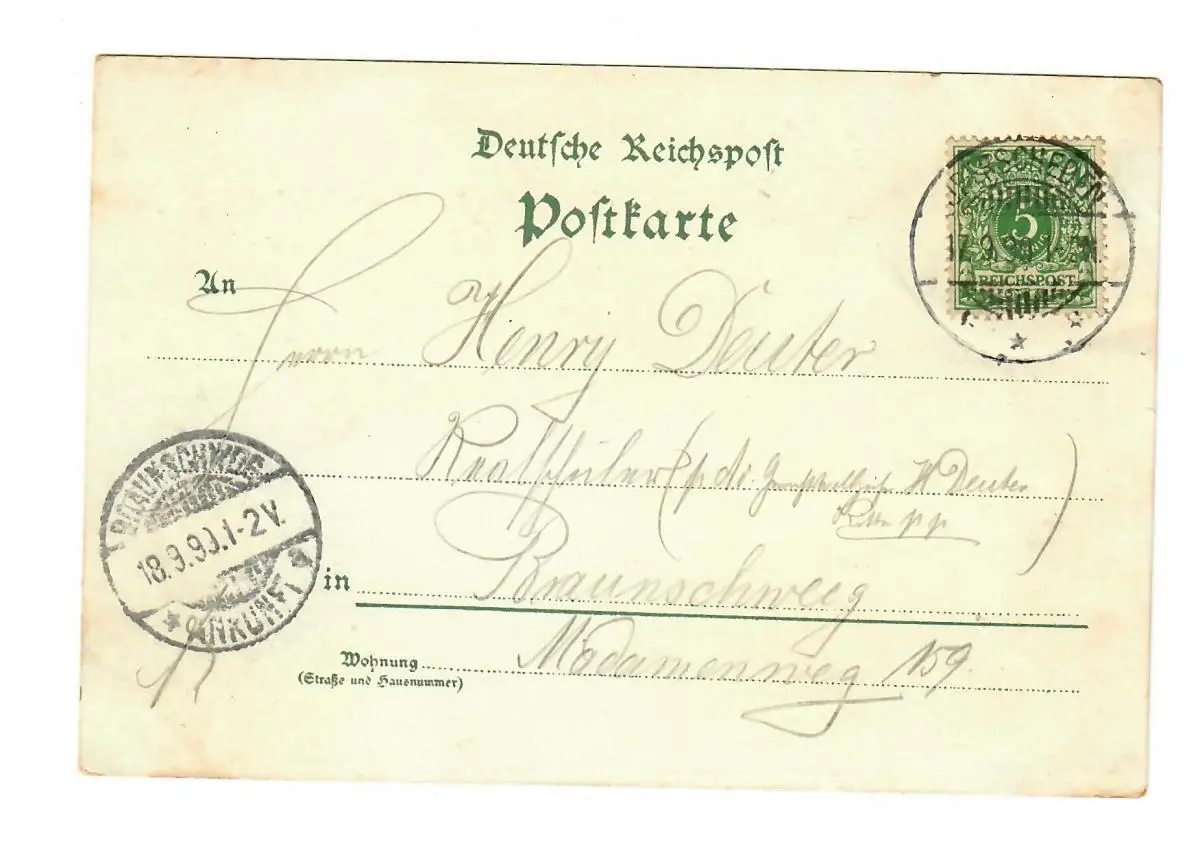 Carte de vue "Gruss de Niederscheden" 1899 après Braunschweig