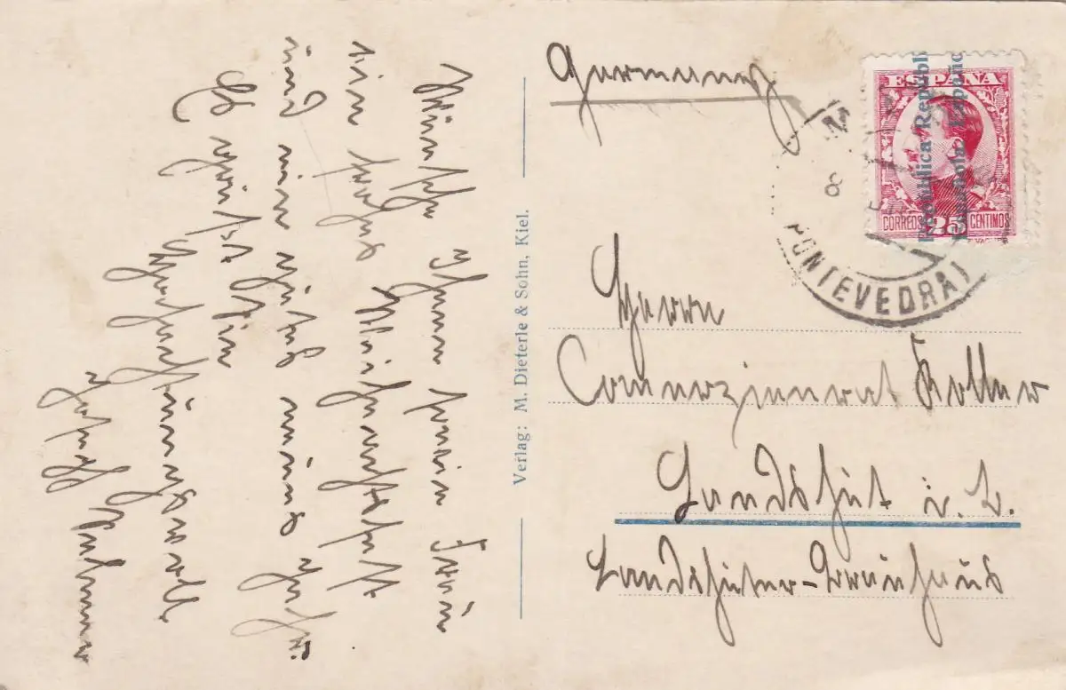Carte de vue Kreuzer Karlsruhe d'Espagne vers l'Allemagne