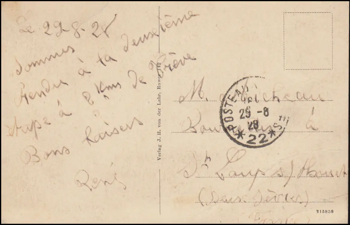 Carte de vue Ruwer chez Trèves - Panorama, poste de champ français 25.8.1928