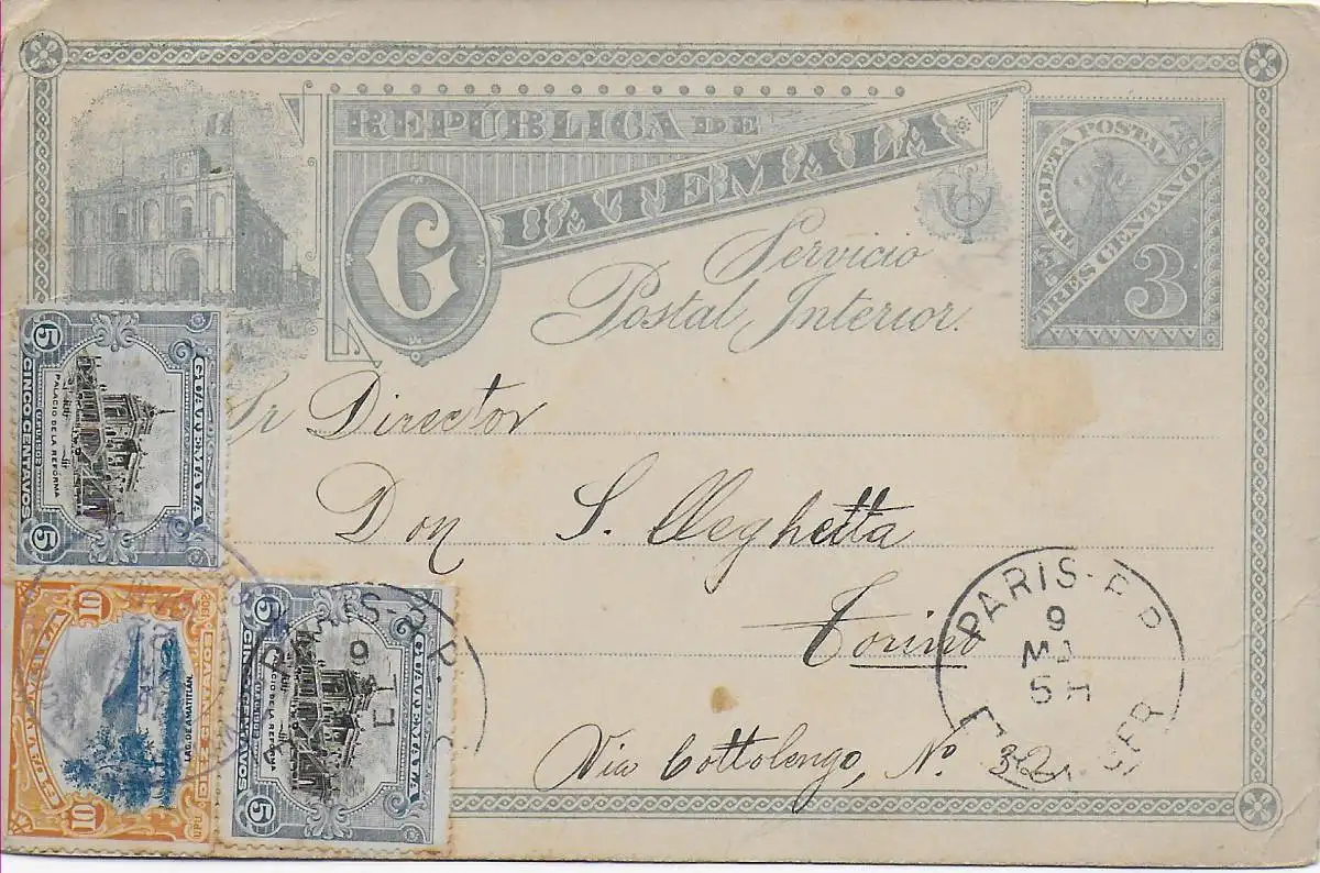 Carte postale Paris P.P. vers Corino via Botolengo, 1911