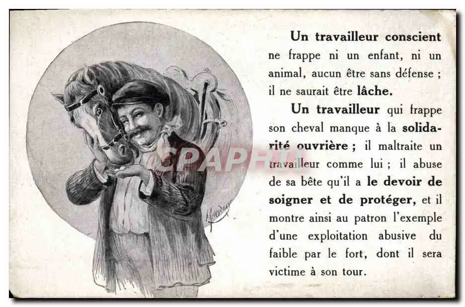 Cartes postales Cheval Equitation Hippisme Un travailleur conscient