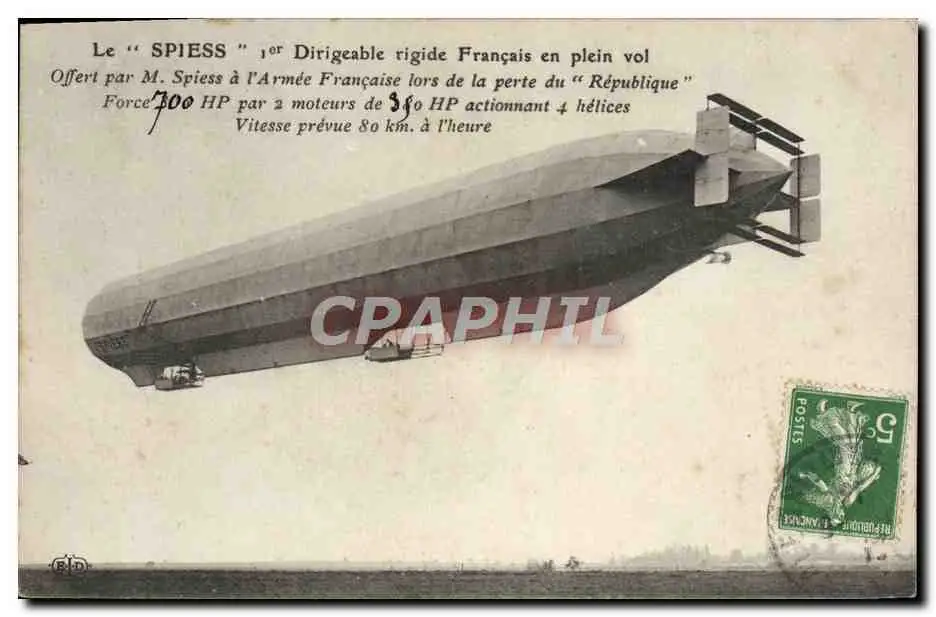 Cartes postales Dirigeable Zeppelin Spiess 1er dirigeable rigide francais