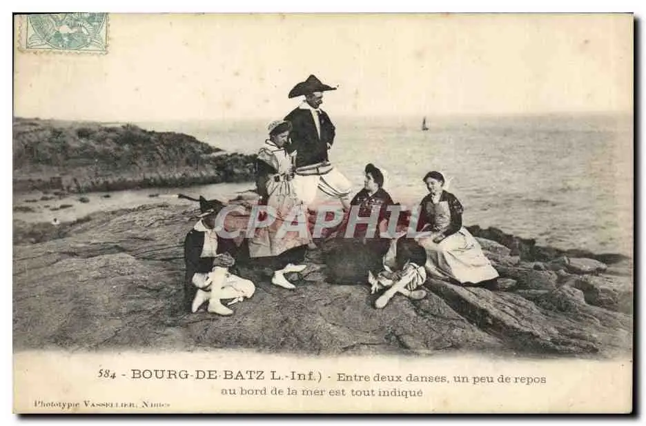 Cartes postales Folklore Bourg de Batz Entre deux danses un peu de repos au bord de la mer est tout indique