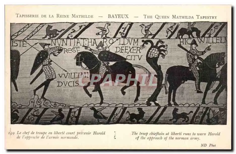 Cartes postales Tapisserie de la reine Mathilde Bayeux Le chef de troupe en liberte court prevenir Harold