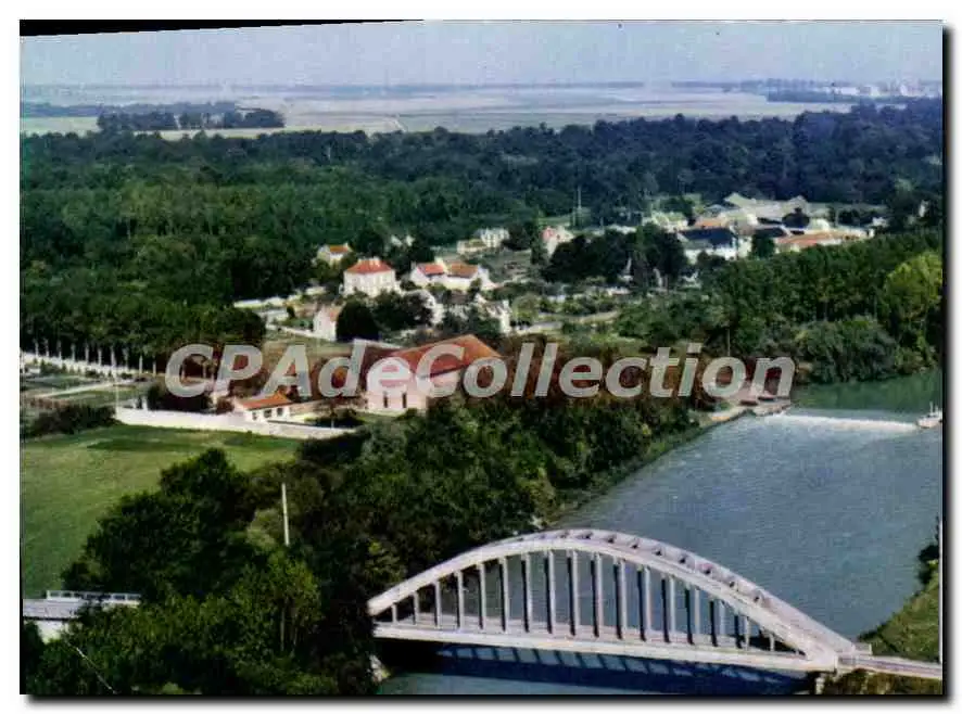 Moderne Karte Isles les Meldeuses (Seine et Marne) Vue aerienne Le pont et l'ecluse