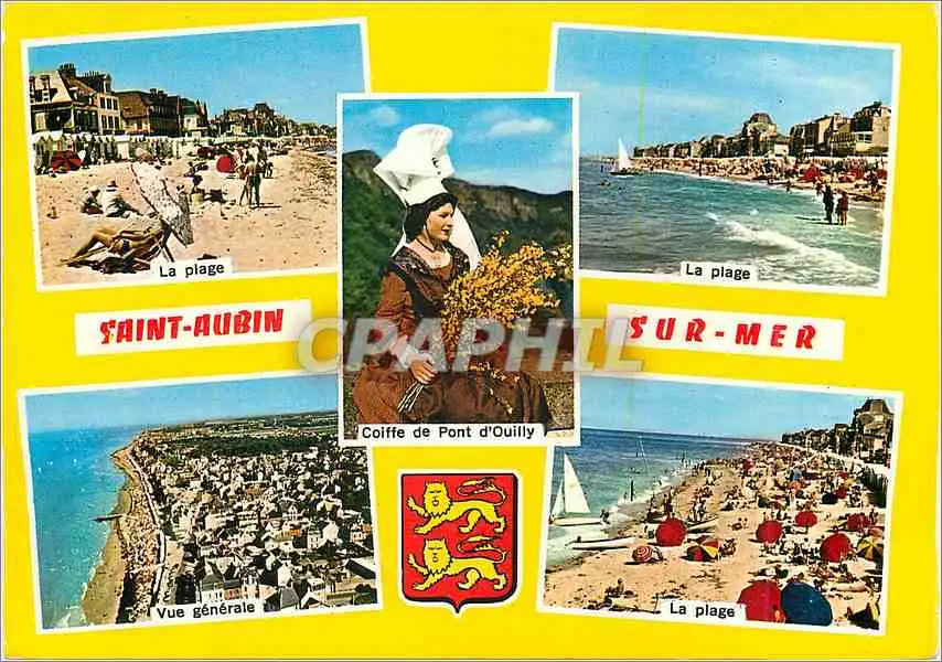 Cartes postales moderne Saint Aubin sur Mer (Calvados) La plage Vue generale Coiffe de Pont d'Ouilly Folklore