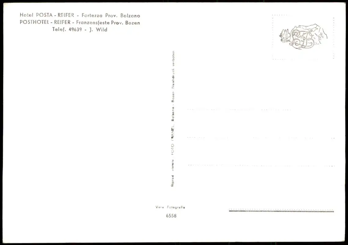 Cartolina Franzensfeste Fortezza Hotel POSTA - REIFER b. Bozen 1972