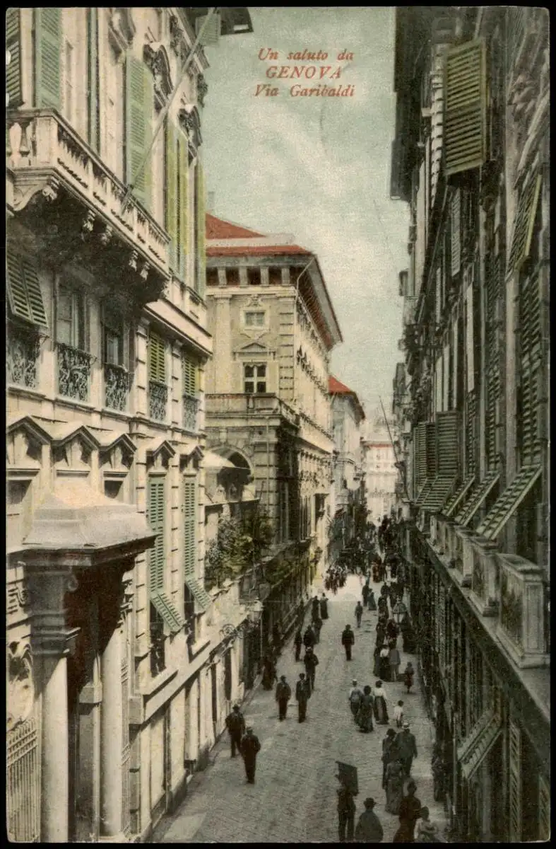Cartolina Genua Genova (Zena) Via Garibaldi 1909