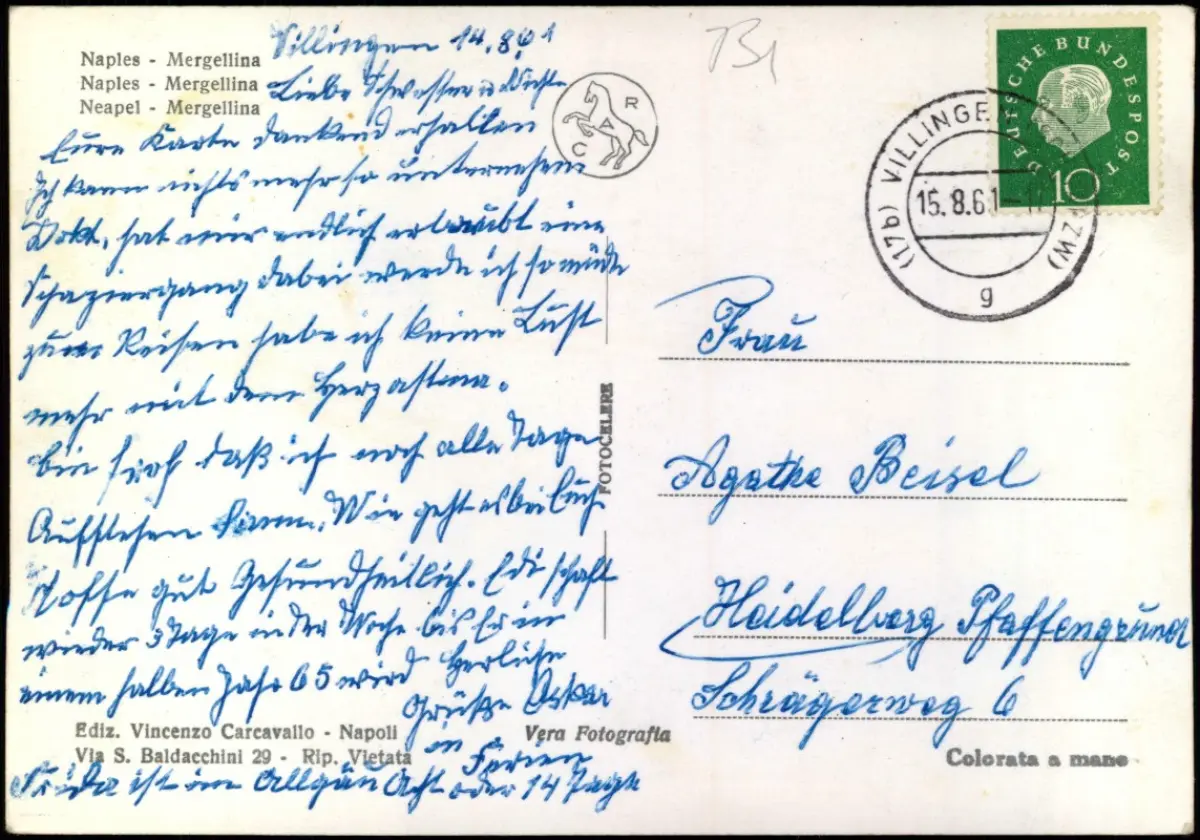 Cartolina Neapel Napoli Mergellina . Colorfotokarte 1961