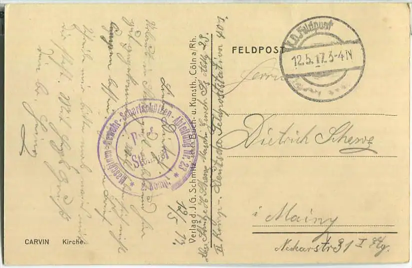 Carvin - Kirche - Feldpost (G42532) gel. 1917