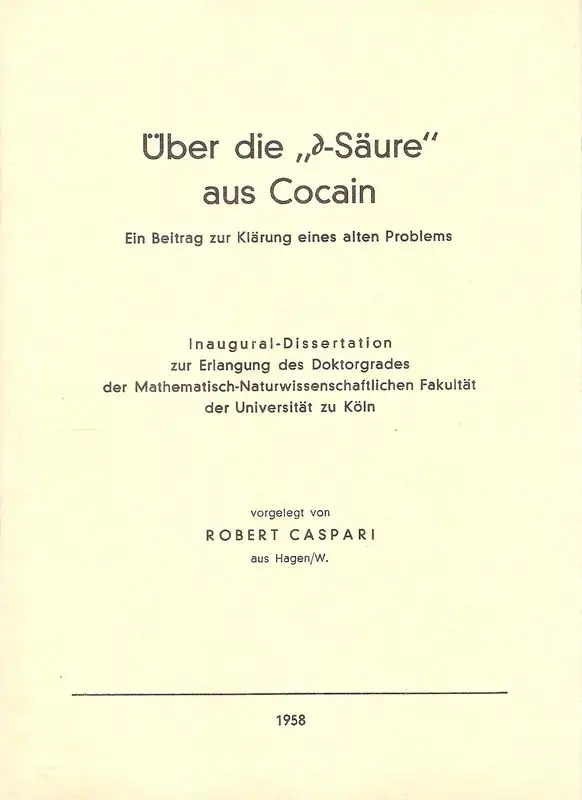 Caspari, Robert: Über die "[Delta]-Säure" aus Cocain. Ein Beitrag zur Klärung eines alten Problems. (Dissertation).