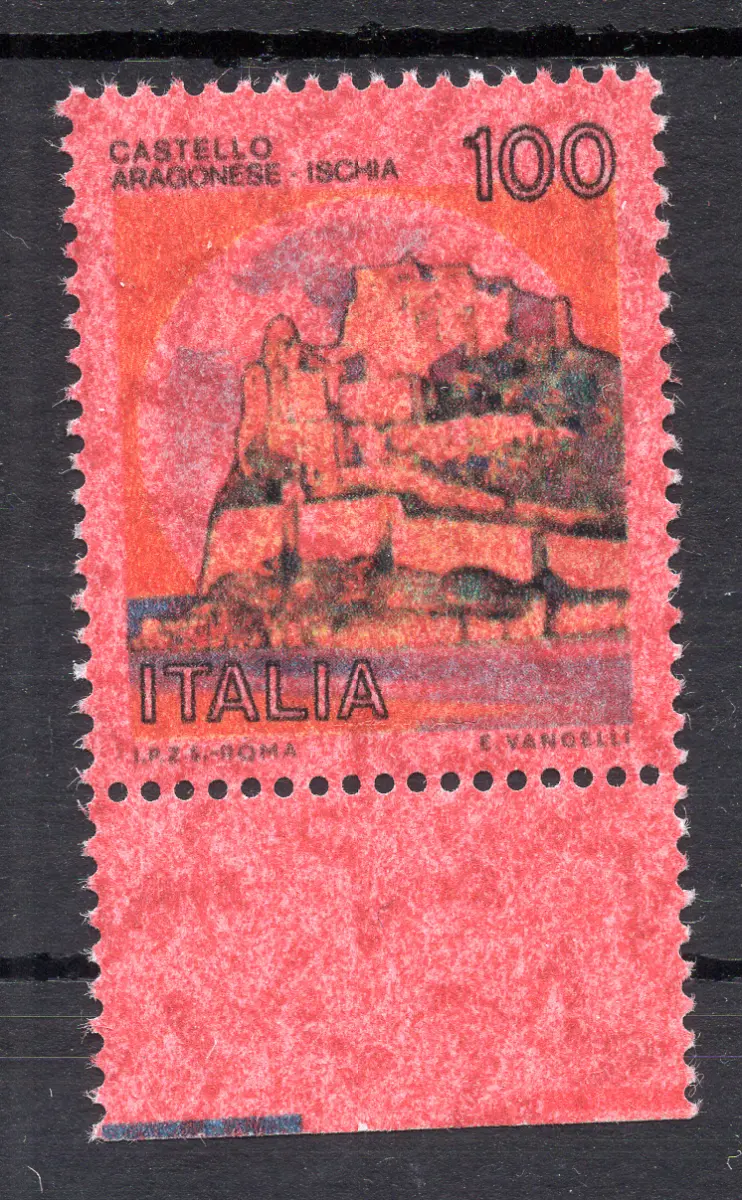 Castelli Lire 100 auffällige Sorte Magenta-Tinte Vollgummi - Castelli Lire 100 Nr. 1511 mit auffälliger Magenta-Tinte auf der gesamten Oberfläche der Briefmarke - Interessanter Code 541/7