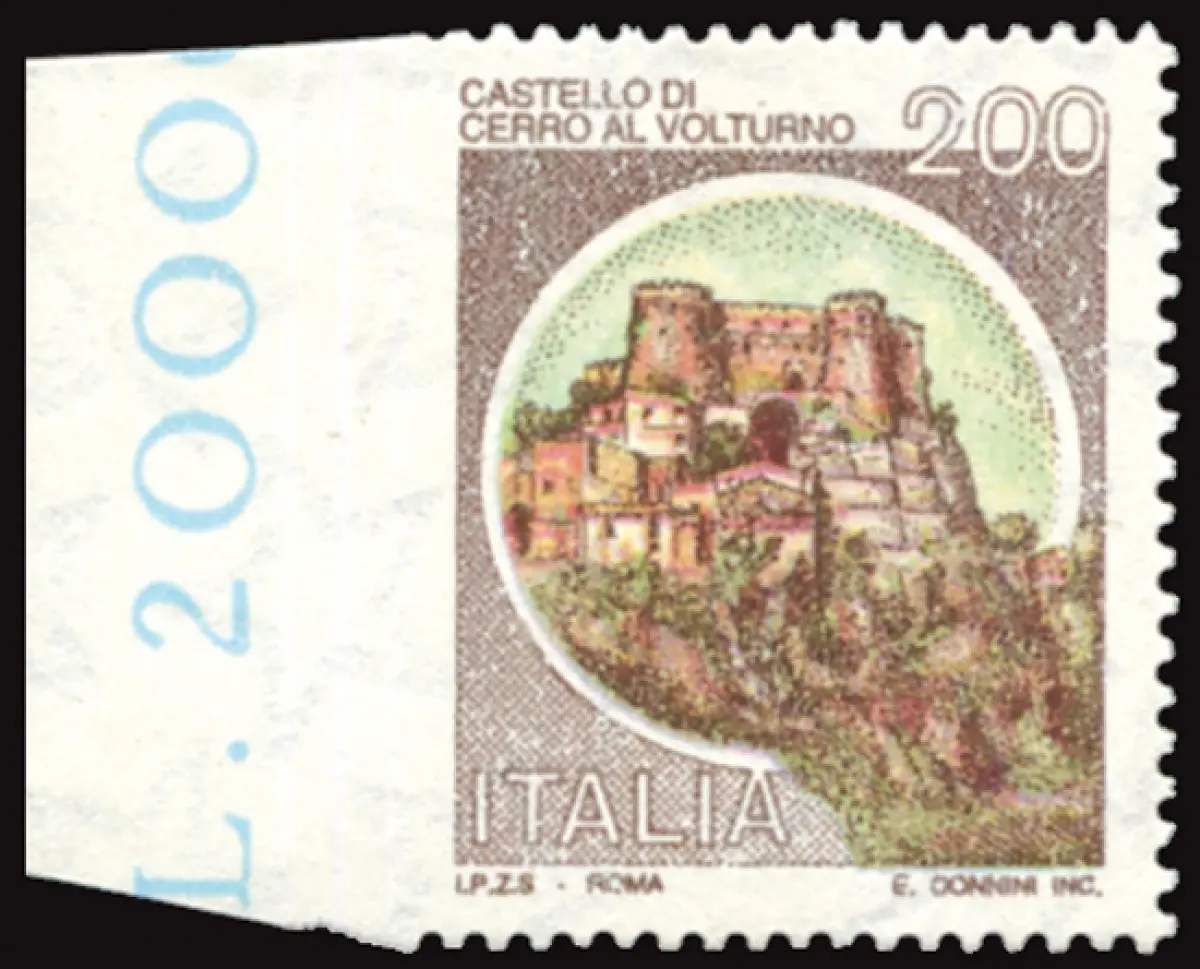 Castelli Lire 200 II Typ Sorte nicht gezahnt. links Vollgummi MNH - Castelli Lire 200 Nr. 1516/II zweite Art Tiefdruck, links ungezähnt b. von f. komplett - Selten Cod. 585/16