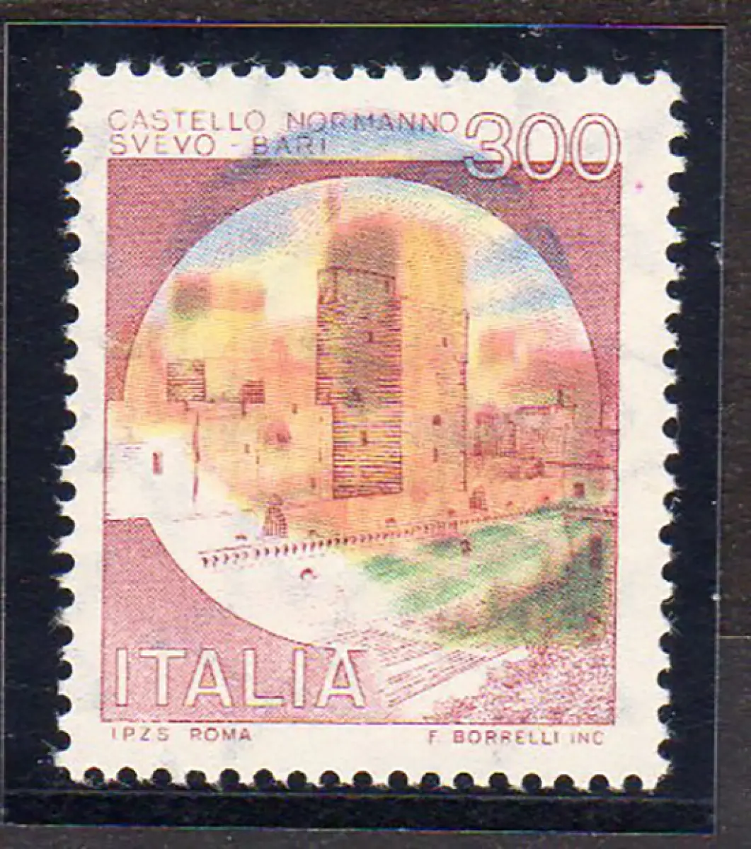 Castelli Lire 300 verschiedene Farben der Mitte verschoben Vollgummi MNH - Castelli Lire 300 Nr. 1518 Druck der stark nach oben verschobenen Farben der Mitte - Ungewöhnlich Cod. 610/15