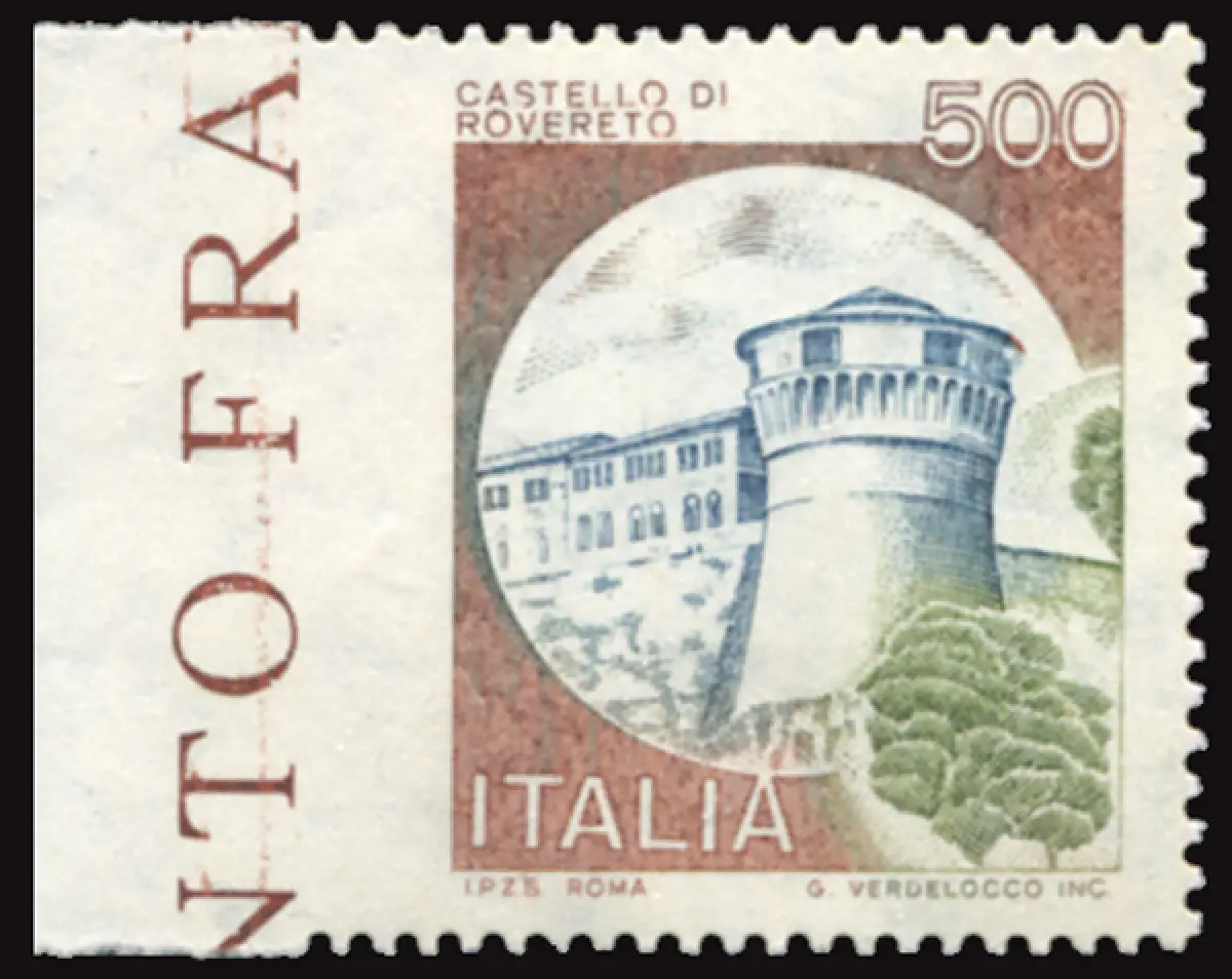 Castelli Lire 500 Sorten ungezähnt links Vollgummi MNH - Castelli Lire 500 Nr. 1522 ungezähnt links b. von f. Integral (Sass. spec. Nr. 1139 Em) - Selten Cod. 622/16