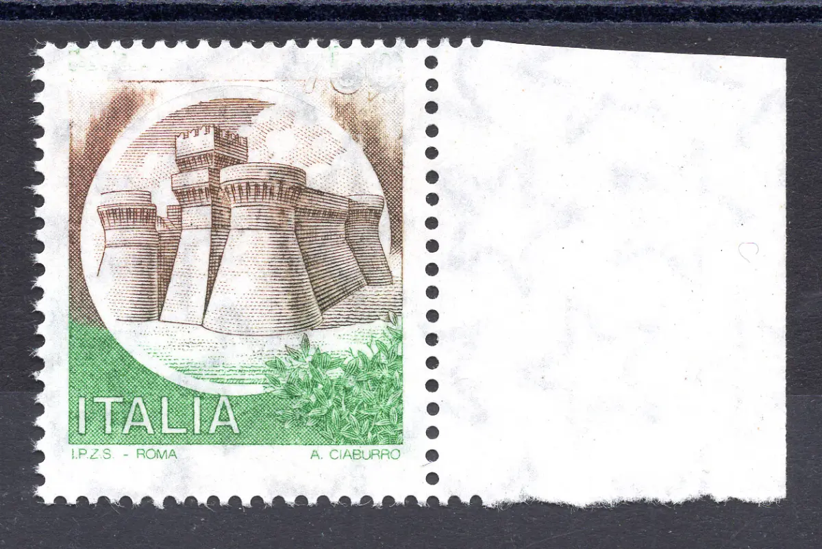 Castelli Lire 750 Sorte Trockenlauf (in Albino) in der Farbe Blau Vollgummi - Castelli Lire 750 Nr. 1524A mit Trockendurchgang (Albino) in der Farbe Blau, der den Rahmen oben auf der Briefmarke vervollständigt Auffälliger Code 672/8