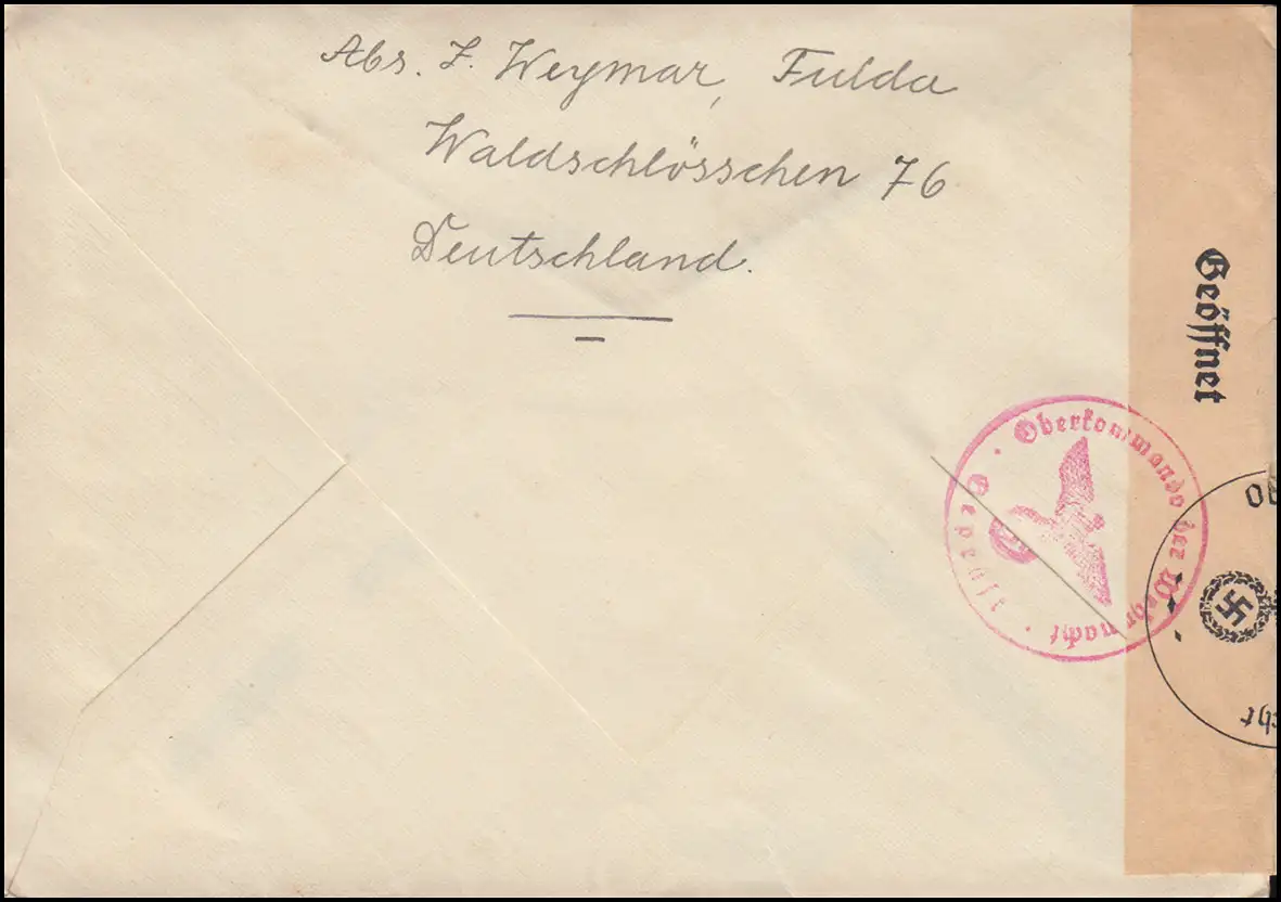 Censuration allemande sur lettre Hindenburg-MiF Tampon publicitaire guerre-WHW FULDA 6.2.1941