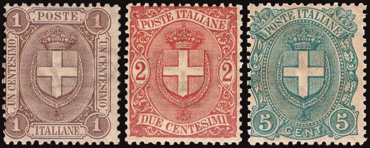 MNH - Vollgummi - - Cent Wappen. 1, 2, 5 n. 65/67 die Reihe von drei optimal zentrierten Werten - Selten in diesem Zustand - Kat. euro 850 Cod.35/182