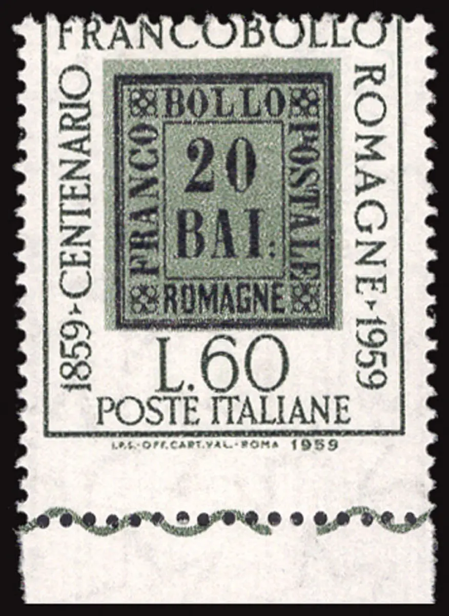 MNH - Vollgummi - Centenario di Romagna Lire 60 Nr. 876b stark nach unten verschobene horizontale Verzahnung - Seltene b. von f. aus der letzten horizontalen Blattreihe - Kat. euro 400 Cod. 803/17