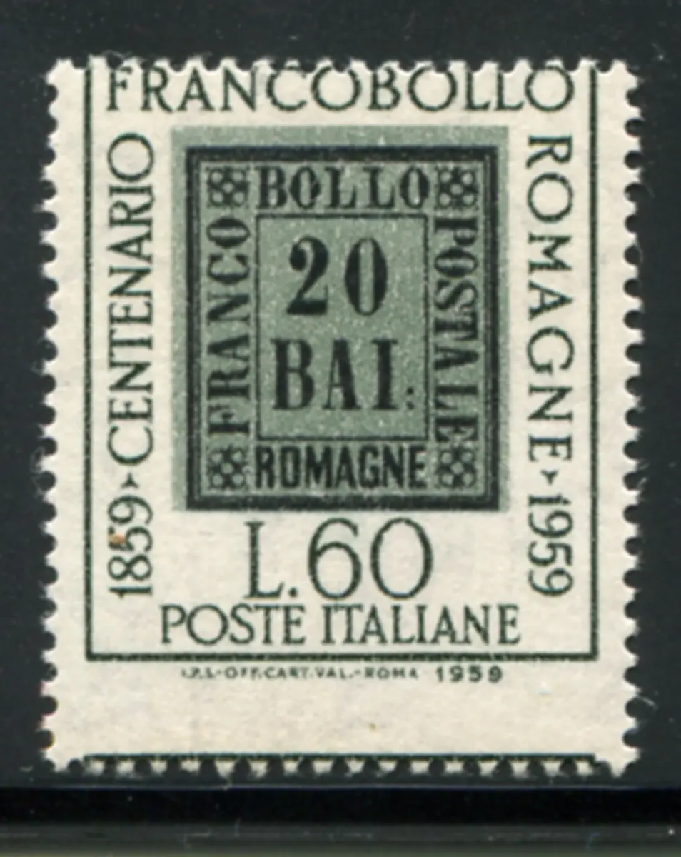 Centenario di Romagna Lire 60 Sorten verschobene Verzahnung nach unten Vollgummi - Centenario di Romagna Lire 60 Nr. 876b Horizontalverzahnung stark nach unten verschoben - Kat. 400 Code 555/8