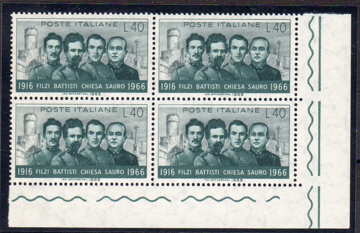 Cesare Battisti Sorte Druck des verschobenen Bodens Vollgummi MNH - Cesare Battisti Nr. 1032 Viertel a. von f. mit leicht nach unten verschobenem Bodendruck - leichte aber dennoch gut sichtbare Verschiebung - Sorte nicht katalogisiert Cod. 520/15